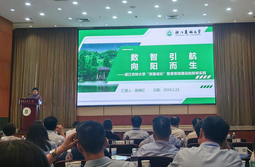 施美紅圍繞我校智慧思政工作,作了題為《數(shù)智引航 向陽而生——浙江農(nóng)林大學(xué)“浙里成長”智慧思政建設(shè)的探索實踐》的經(jīng)驗交流報告。她從建設(shè)基礎(chǔ)、建設(shè)內(nèi)容和建設(shè)成效等方面,系統(tǒng)介紹了我校“一庫一表一次”建設(shè)工程以及“浙里成長”智慧思政平臺建設(shè),報告內(nèi)容得到與會代表的熱烈討論和高度認(rèn)可。