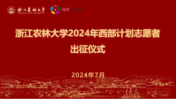 學(xué)校項(xiàng)目辦十分關(guān)心我校西部計(jì)劃志愿者。7月19日舉行了浙江農(nóng)林大學(xué)2024年西部計(jì)劃志愿者線上出征儀式,每位西部計(jì)劃志愿者發(fā)表感言。7月22日,參加了2024年浙江省大學(xué)生志愿服務(wù)西部計(jì)劃志愿者出征儀式。
