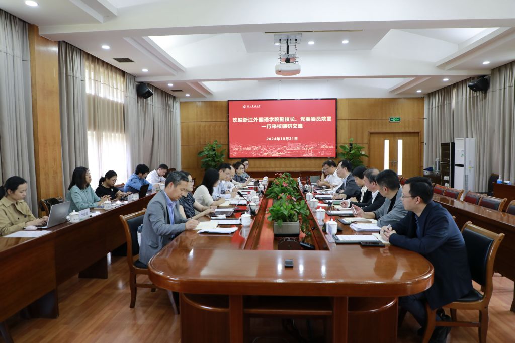 10月21日,浙江外國語學院副校長姚旻一行來校調研交流。校黨委副書記倪建均出席并主持調研座談會。