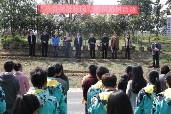 校長周國模代表學校接受了“珍貴樹進校園”贈苗清單。此次省林業廳共贈送浙江楠、南方紅豆杉、閩楠、浙江樟、紅豆樹、細柄阿丁楓、赤皮青岡、江南油杉等珍貴樹種1萬株。