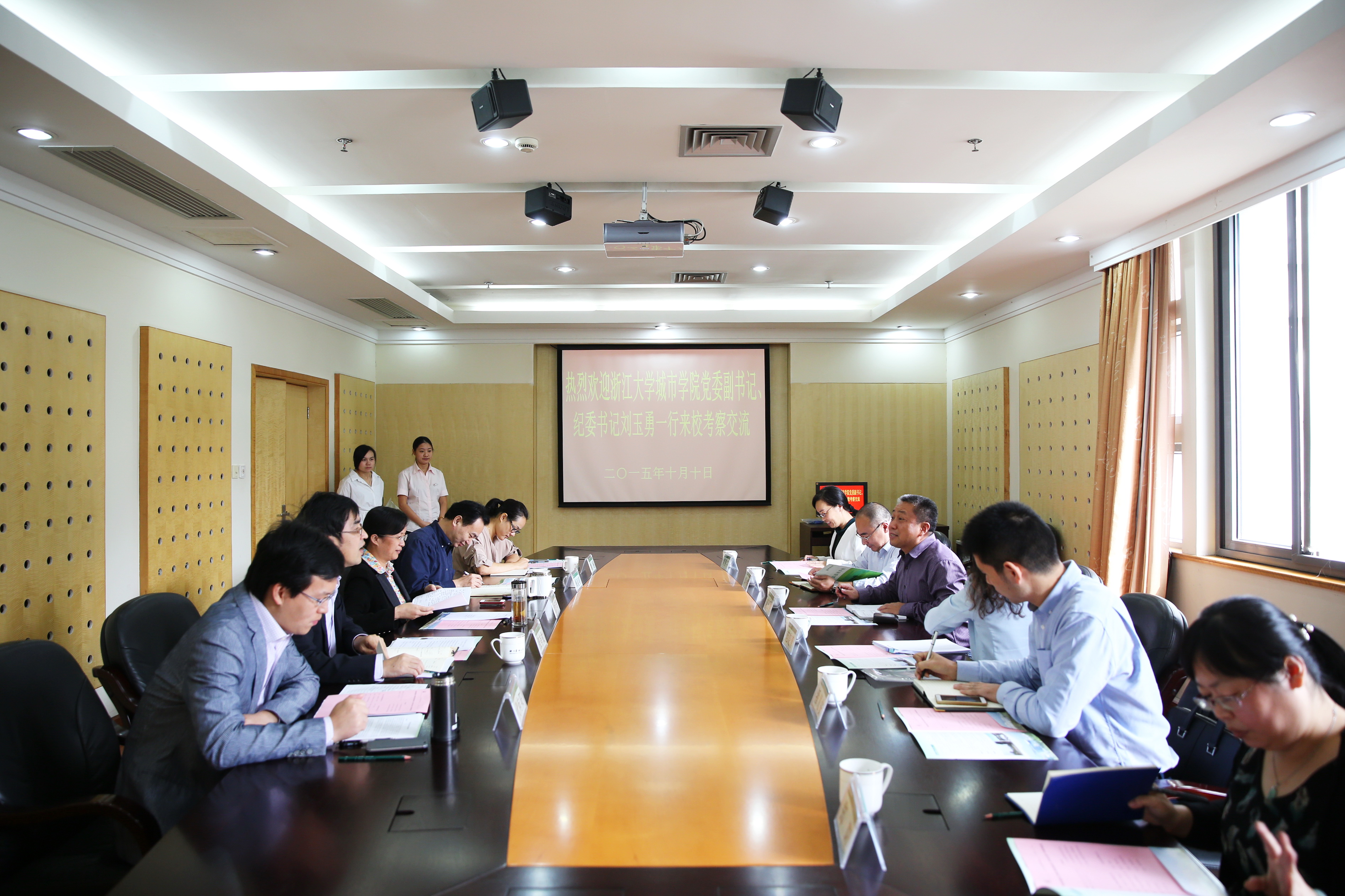 10月10日,浙江大學城市學院黨委副書記、紀委書記劉玉勇一行來我校考察交流。副校長沈月琴與劉玉勇一行進行座談。