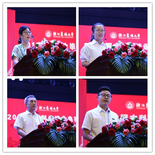 教師代表經濟管理學院楊麗霞副教授,畢業生代表理學院呂巧巧同學,畢業生家長代表——農學院王程寬同學的父親、我校1987屆校友王冬米先生,在校生代表工程學院劉建功同學先后發言。