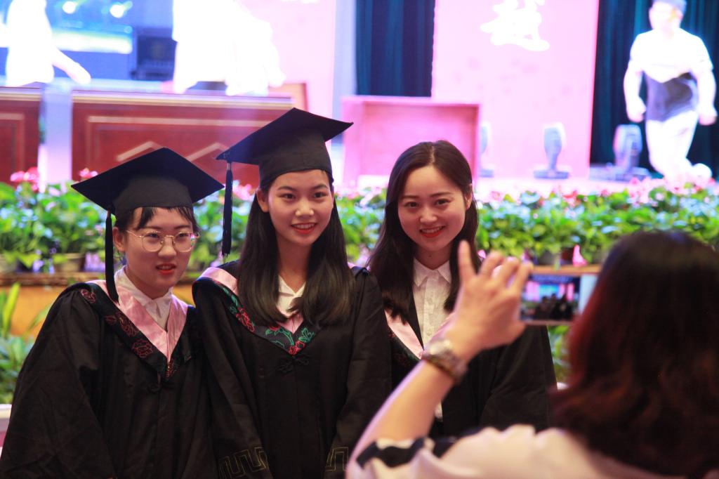 在音樂的伴奏下,3790名畢業生按學院、班級依次上臺,進行學士學位授予儀式。校領導為每一位畢業生頒發學位證書、扶正流蘇,并與開啟未來新征程的2018屆畢業生合影留念。