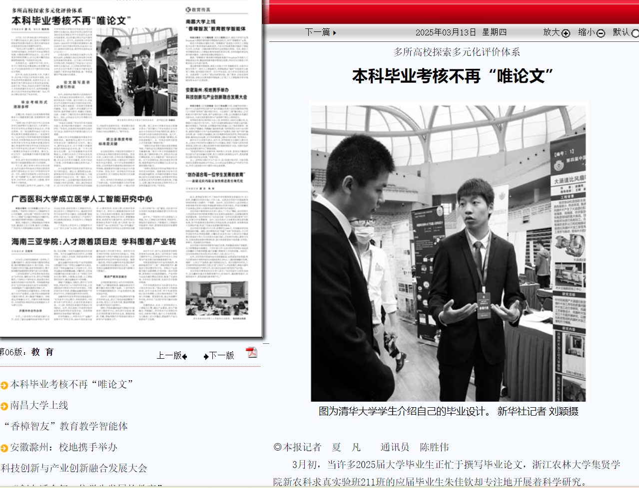 《科技日報》:多所高校探索多元化評價體系 本科畢業考核不再“唯論文”