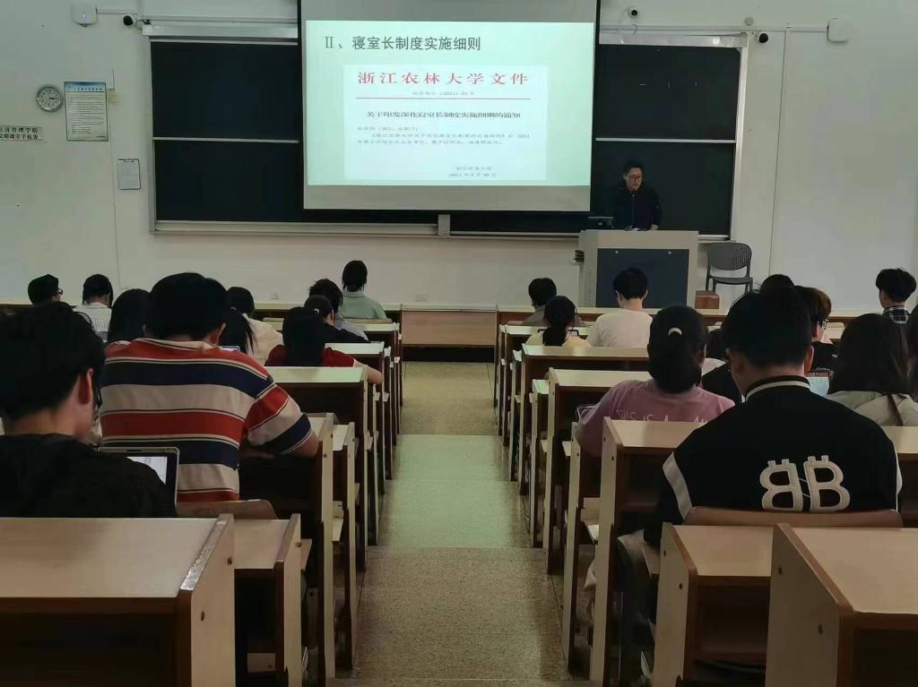 吳昌澤解讀了《浙江農林大學寢室長(心理導航員)心理互助工作制度》文件及實施細則,闡明了心理導航員的選拔條件、任用程序及主要職責,闡釋了識別典型心理疾病、覺察朋輩心理危機基本方法,普及了使用評測量表評估壓力水平與情緒狀態、識別處置舉動異常學生等常識,并鼓勵大家積極學習心理健康知識、踴躍開展心理健康活動。