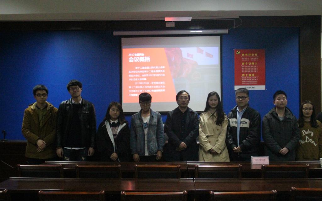 活動采取代表發言、老師點評的方式進行。學生代表就“兩會”精神學習發表了各自的見解;相關專業老師就論述黨的建設問題、“兩會”熱議話題——如何治理霧霾、城市環境保護管理問題、思想政治教育話語轉型問題等提出了自己的看法。