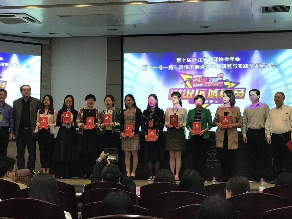 4月15日,2017年浙江省“LSCAT”杯翻譯大賽(筆譯)在浙江工業大學成功落幕,共有1000余名選手參加比賽。經過專家評委會評閱,我校學子取得英譯漢一等獎3名、二等獎6名,漢譯英一等獎1名,二等獎4名的好成績,充分展現了學生扎實的語言基本功和過硬的翻譯能力。