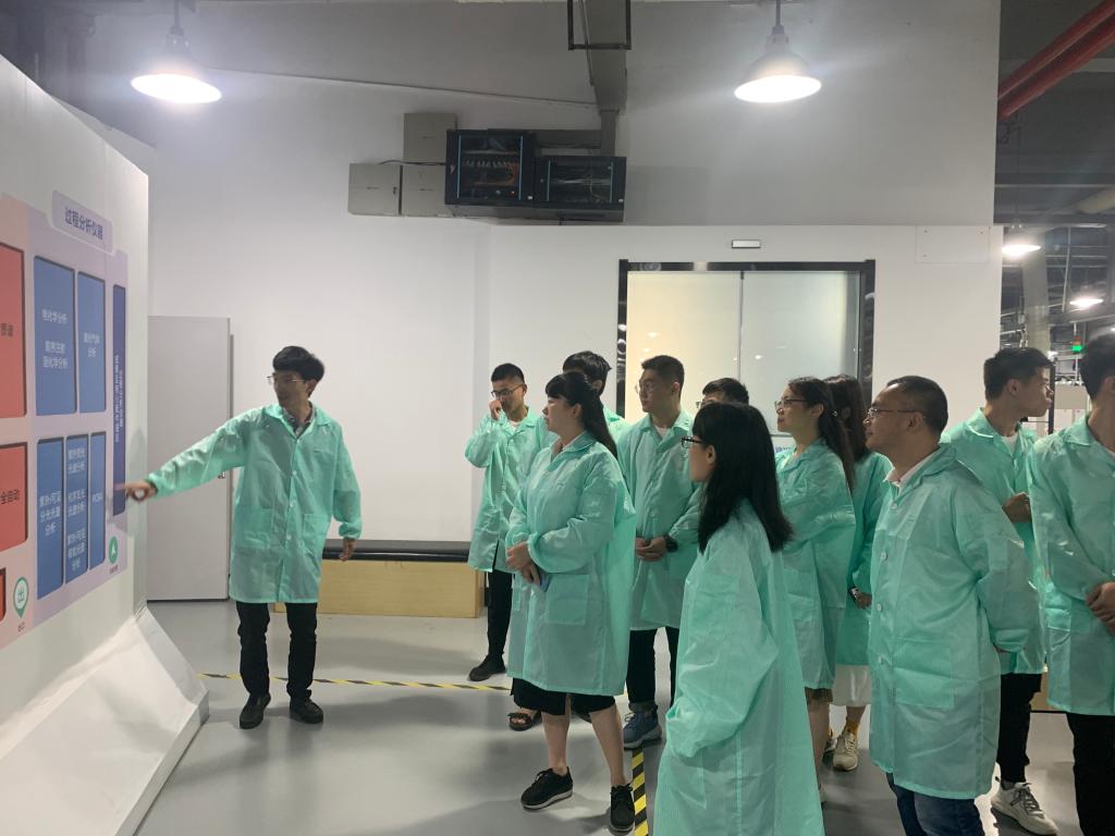 簽約儀式后,在人力資源部經(jīng)理韋東范和支部書記李銳的帶領(lǐng)下,參加簽約儀式的我方代表參觀了譜育科技有限公司生產(chǎn)車間和黨建文化長廊。